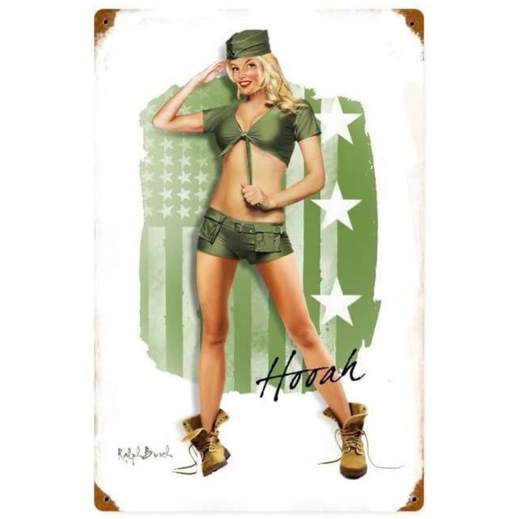 #ArmyGirlSign #VintageMilitaryDecor #MetalWallArtUSA #PinUpWallSign #JackAndFriends