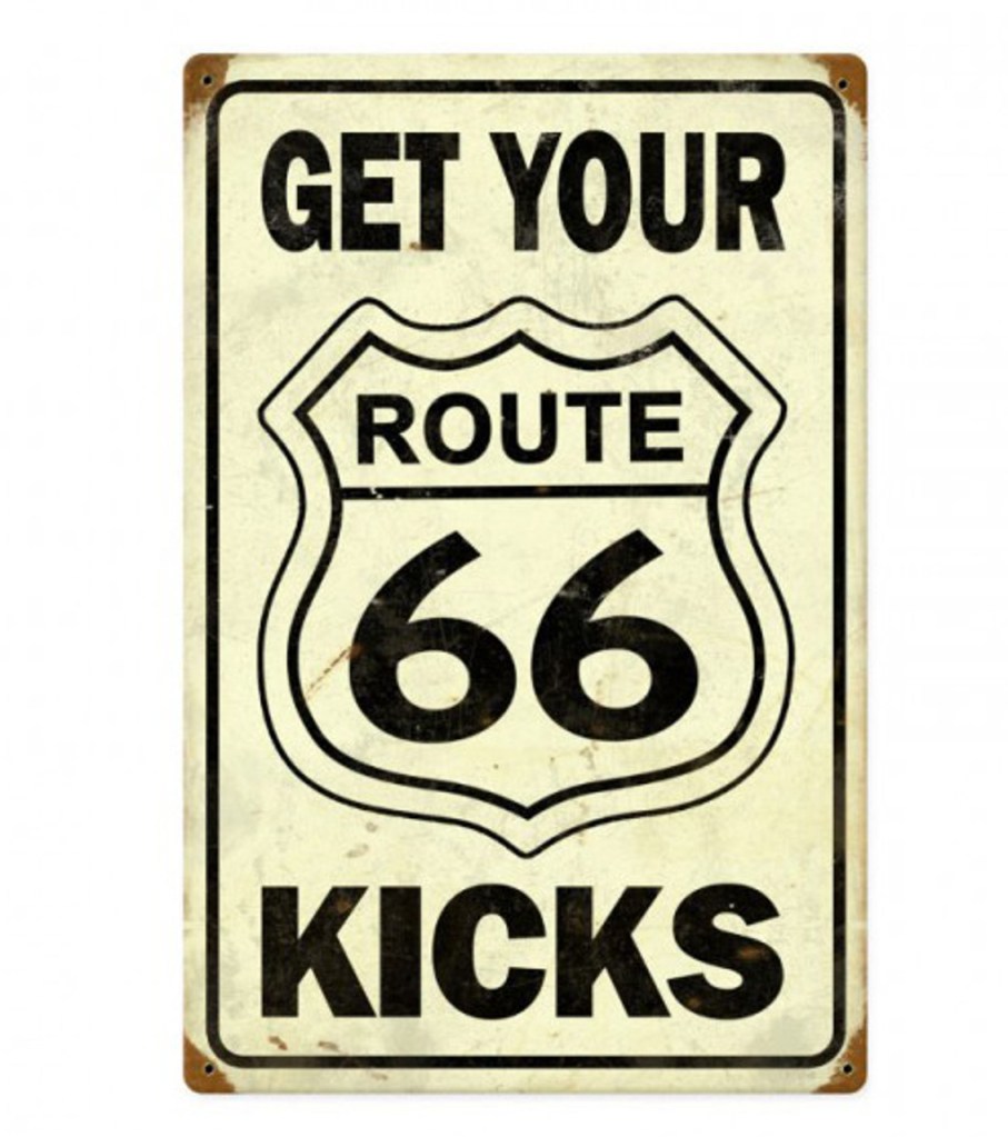 “Get Your Kicks on Route 66” isn’t just a phrase—it’s an invitation to travel, freedom and Americana. This sign channels: