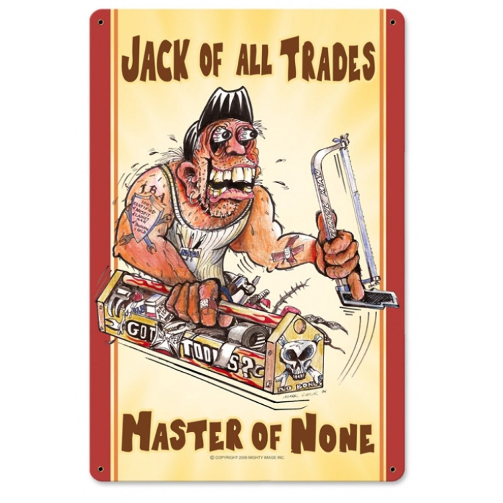 The phrase “Jack of All Trades” communicates ability, adaptability and hands-on talent. This sign works especially well if you: