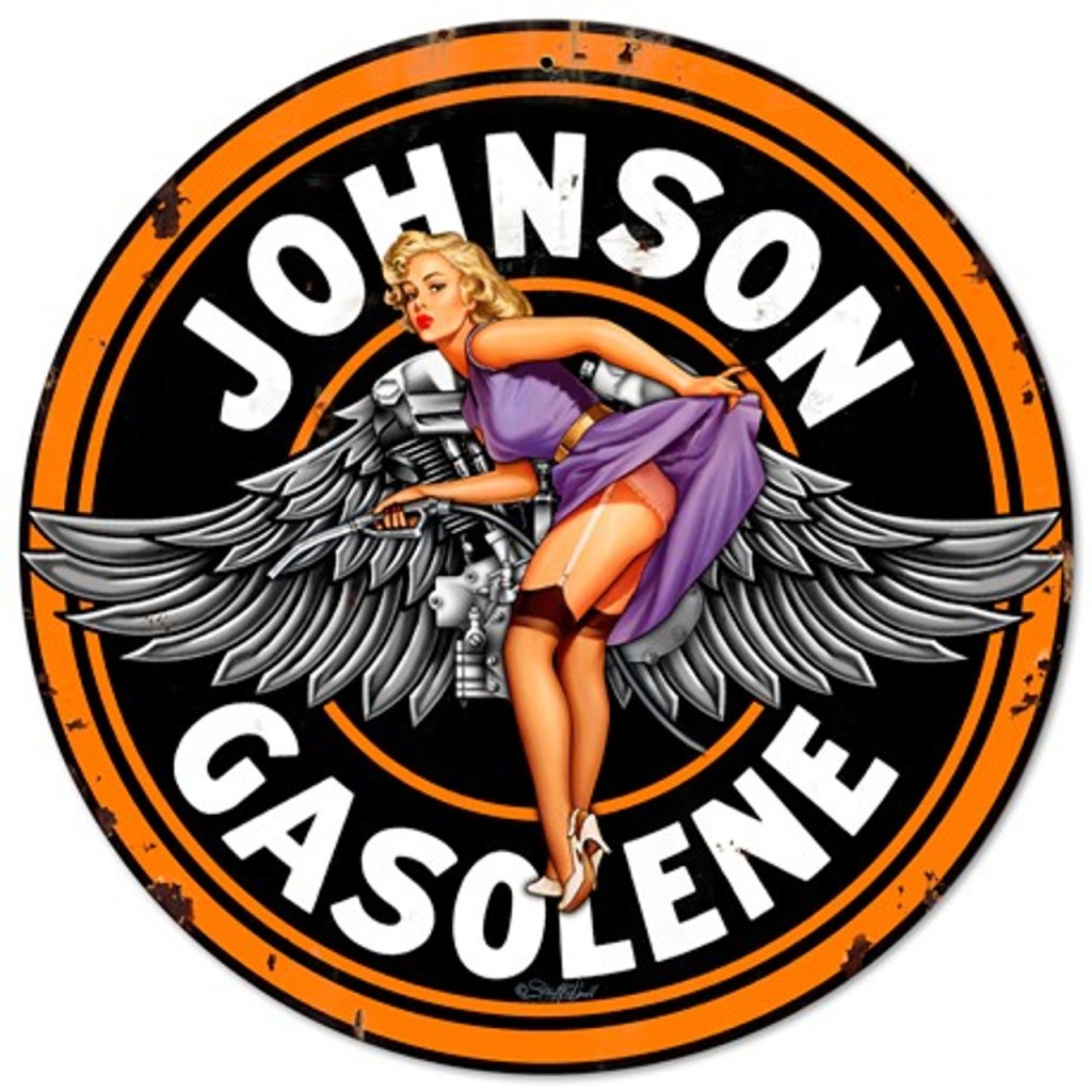 💋 Vintage Gas, Glamour & Grit: The All-American “Johnson Gas Pin-Up Girl” Metal Sign
