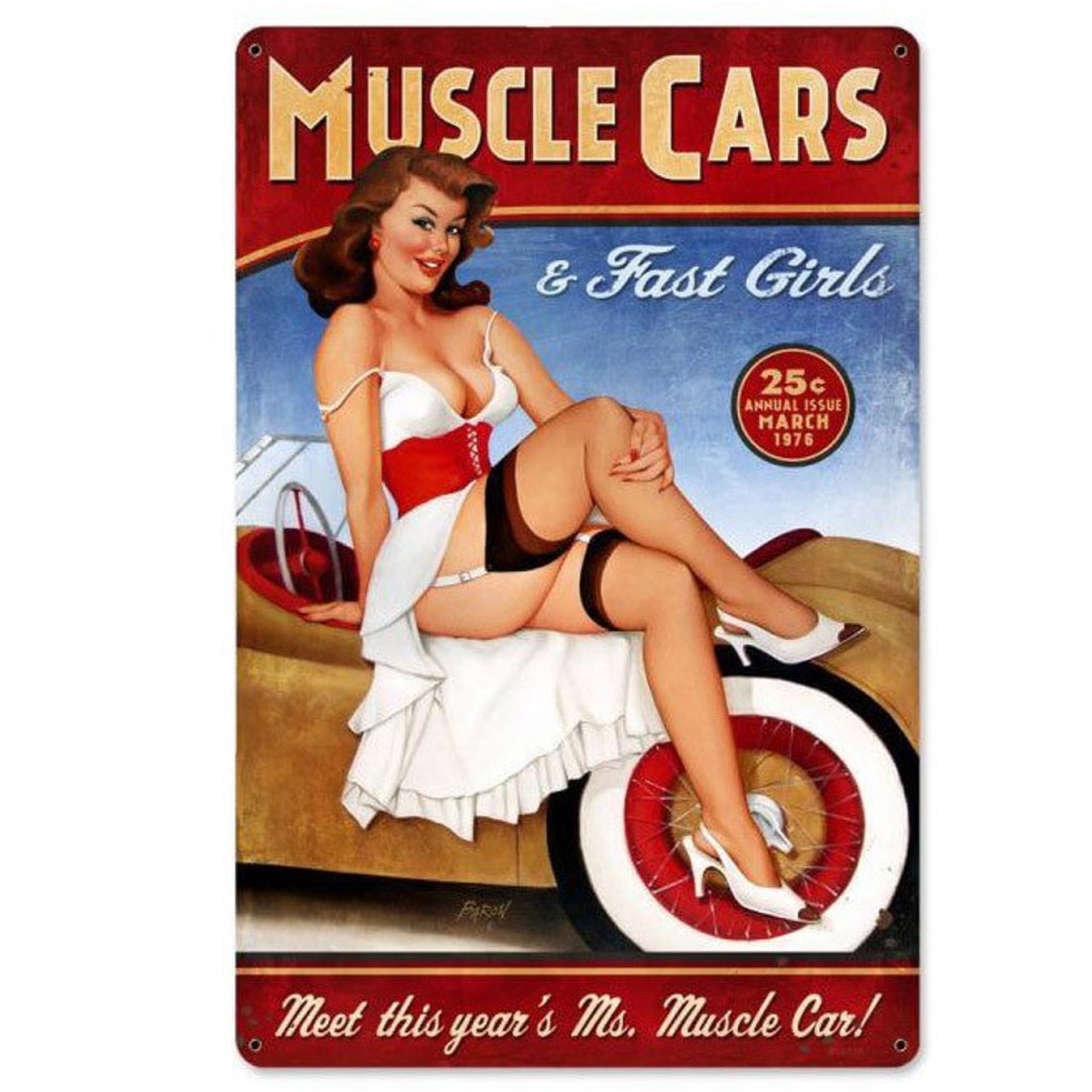 #MuscleCarsSign #PinUpGirlWallArt #RetroGarageDecor #ManCaveGoals #MadeInUSA #JackAndFriends #VintageCarWallArt